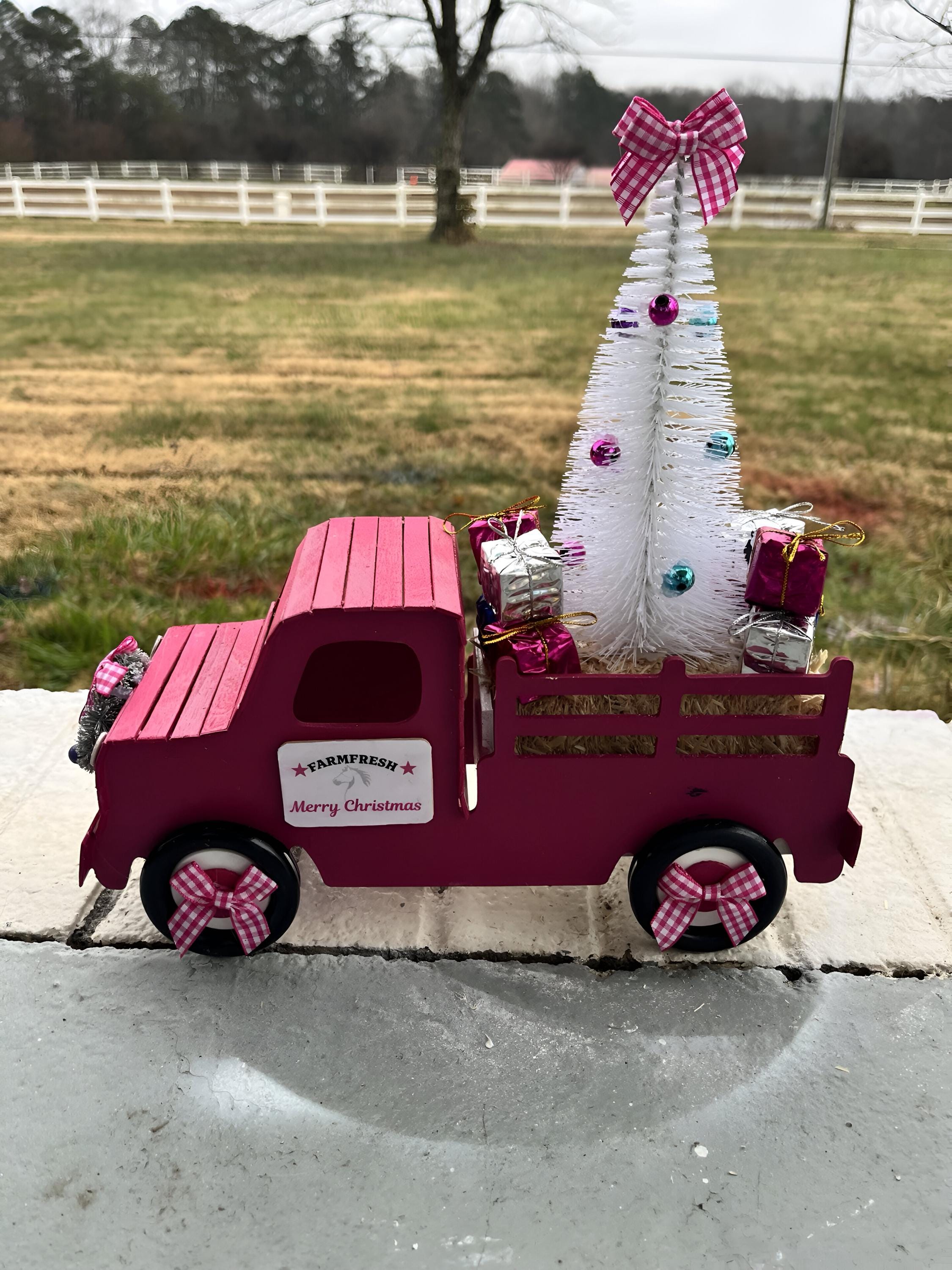 β’ Wooden truck with Farm Fresh Merry Christmas sign