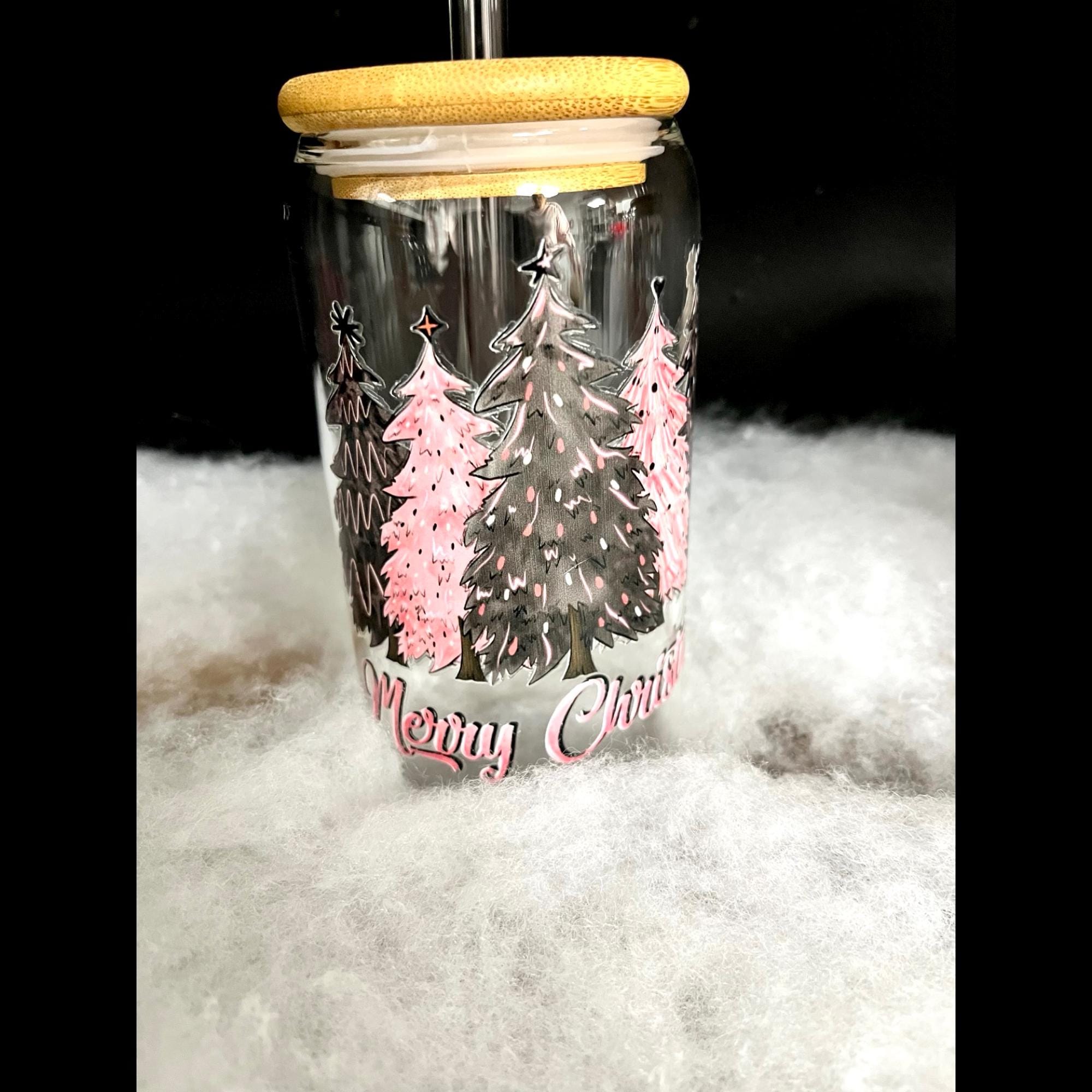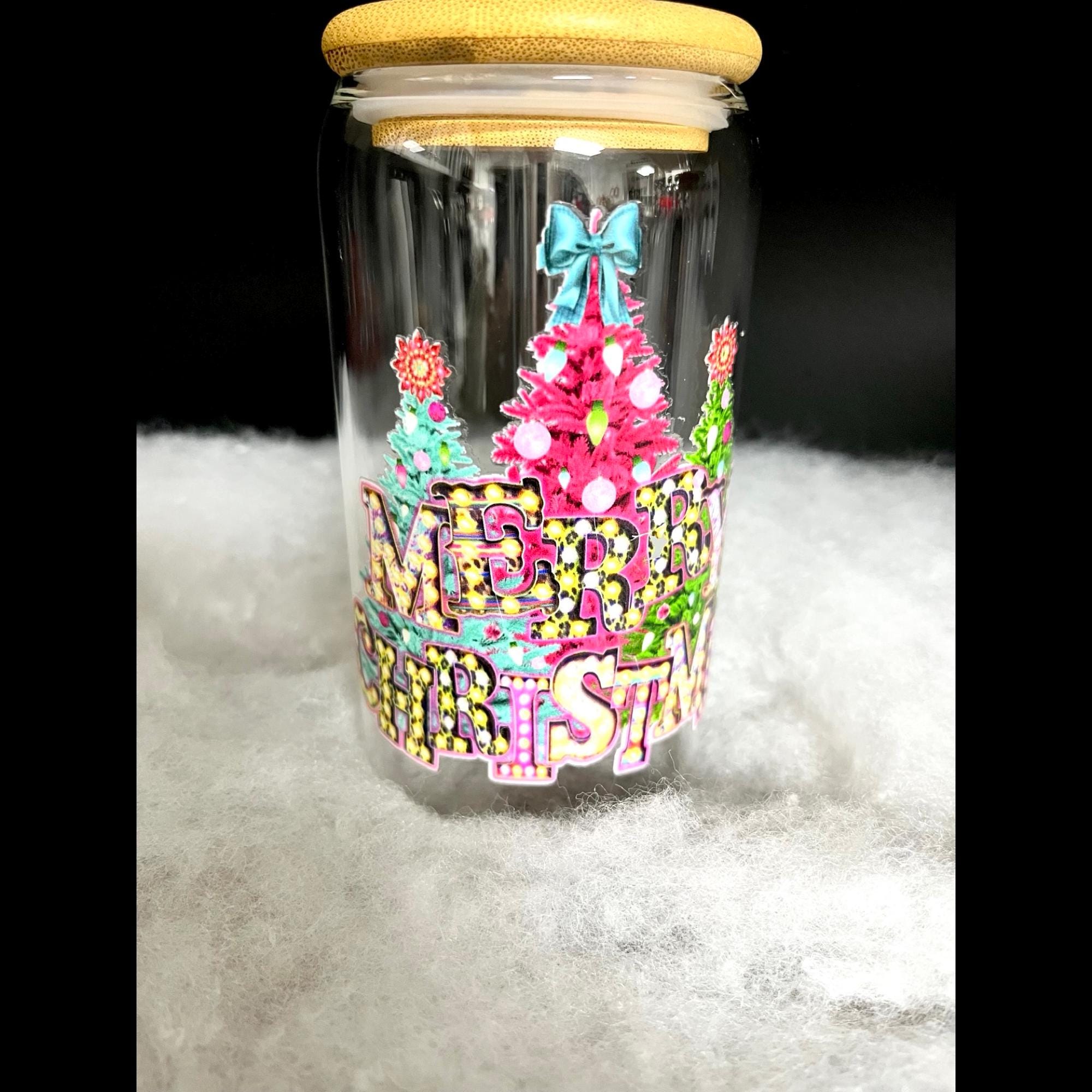Every 16oz Insulated tumbler comes filled with candy, a bamboo lid and a reusable glass straw, insulated for hot or cold, making them both stylish and eco-friendly. The clear glass design lets the artwork shine while giving your drinks a beautiful, festive look.