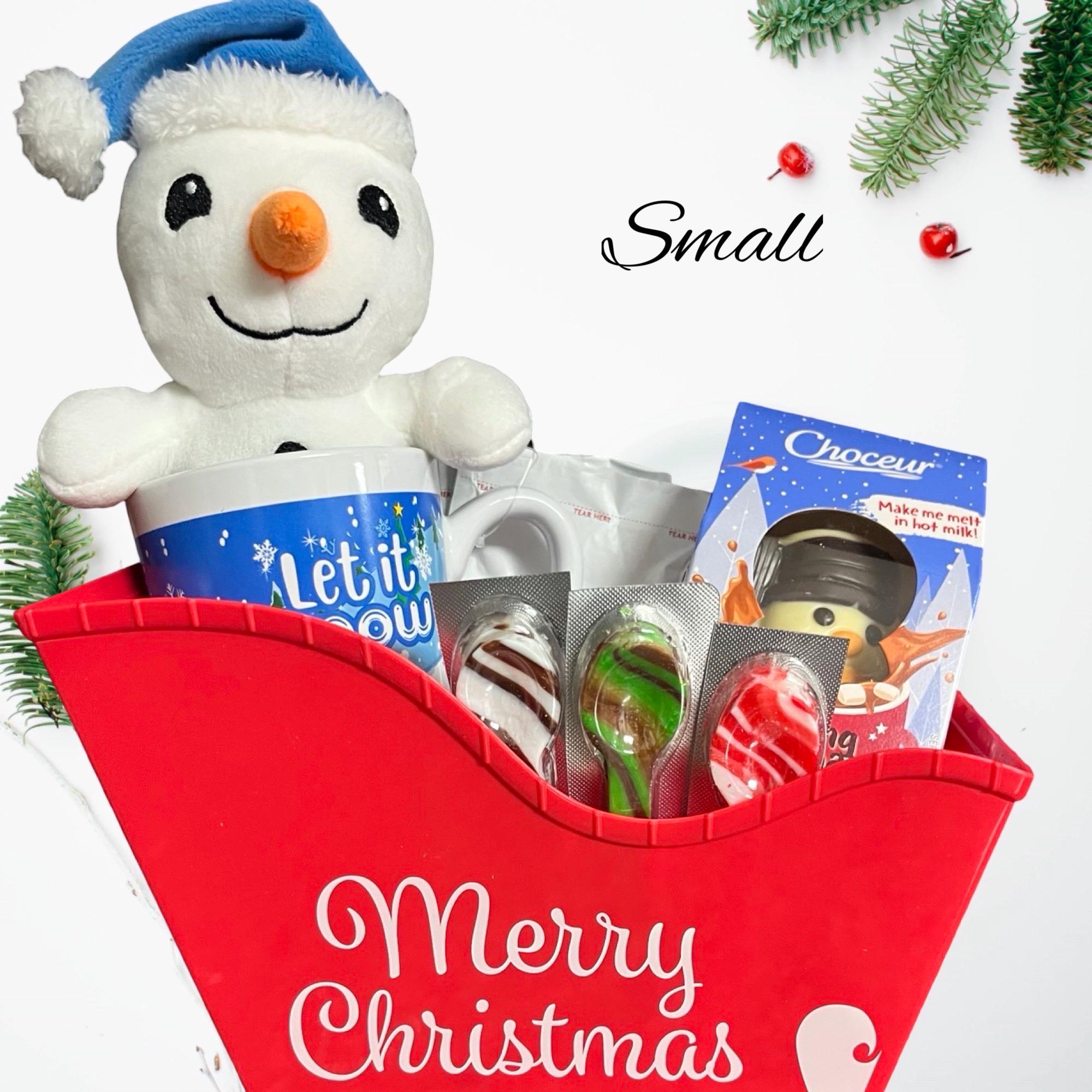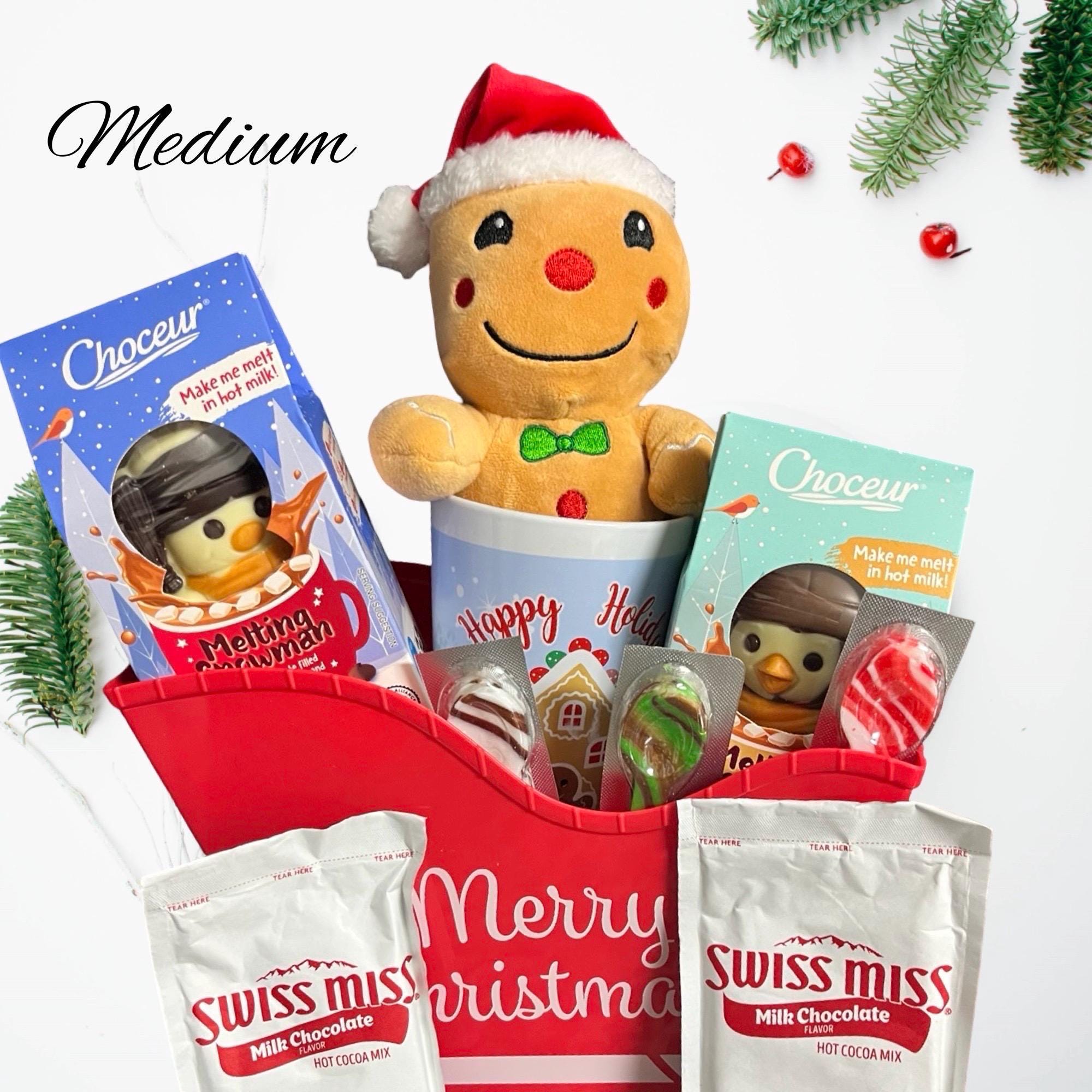 Plush Hot Cocoa Christmas Gift Baskets (Small–XL) — Snowman or Gingerbread Plush
